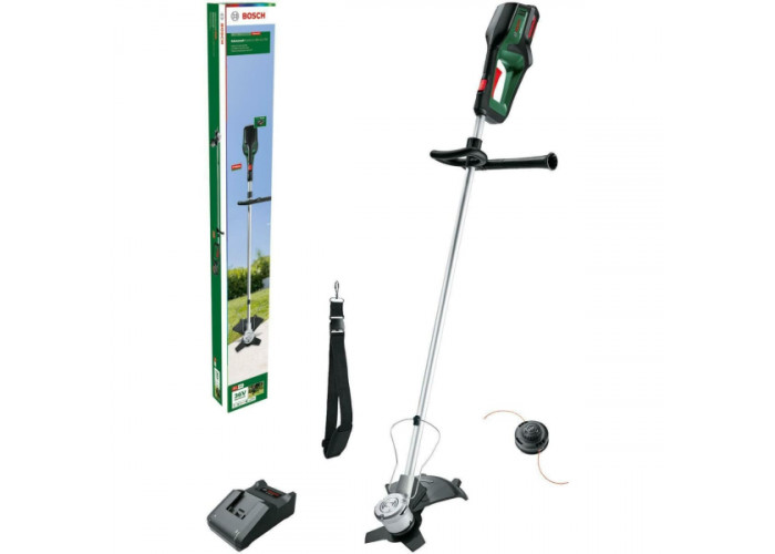 Bosch AdvancedBrushcut 36V-23-750 – ергономічний інструмент високої потужності для скошування довгої трави, бур'янів, кропиви, підліска. Живиться від літій-іонного акумулятора 36 В 2 Ah. Як ріжучий елемент використовується металевий ніж діаметром 23 см, а також котушка з волосінню 3 м завдовжки і товщиною 2.4 мм. Максимальна ширина скошування за один прохід досягає 33 см (при використанні струни). Важить апарат 4,1 кг.