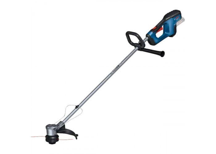 Bosch GRT 18V-33 – удобный инструмент для скашивания травы с шириной обработки 33 см. Запитывается от литий-ионного аккумулятора 18 В. Комплектуется двумя аккумуляторами емкостью 4 Ah. В качестве режущего элемента используется струна толщиной 2,4 мм. Весит аппарат 3.5 кг.