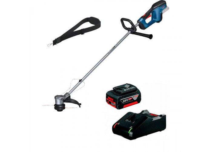 Триммер | Плечевой ремень | Струна | Защита растений | 1 аккумулятор GBA 18V 4.0Ah | Зарядное устройство GAL 18V-40