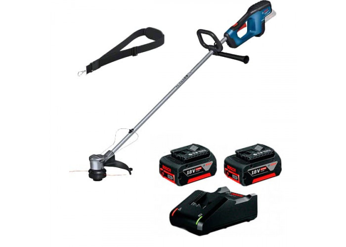 Триммер | Плечевой ремень | Струна | Защита растений | 2 аккумулятора GBA 18V 4.0Ah | Зарядное устройство GAL 18V-40