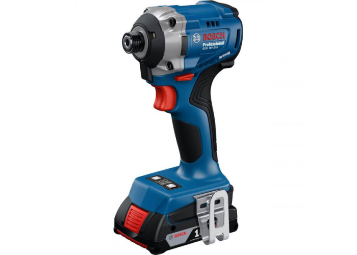 - Комплект поставки включає кліпсу на ремінь, швидкозарядний пристрій GAL 18V-20 і два акумулятори GBA 18V ємністю 2 Ah. Усе упаковано в надійний пластиковий кейс.