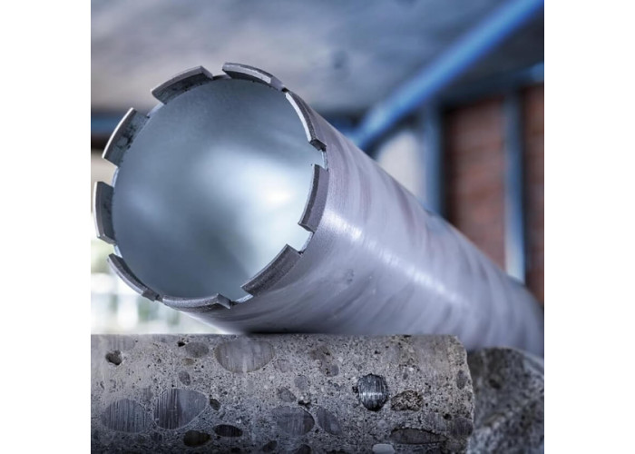 - Завдяки міцній конструкції та використанню високоякісних алмазних сегментів з щільною зв'язкою на металевій матриці, коронка забезпечує стабільну і точну роботу навіть при контакті з арматурою.