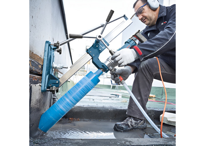 - Диаметр коронки составляет 132 мм, а его рабочая длина 450 мм, что позволяет с легкостью бурить стены, фундамент и т д.