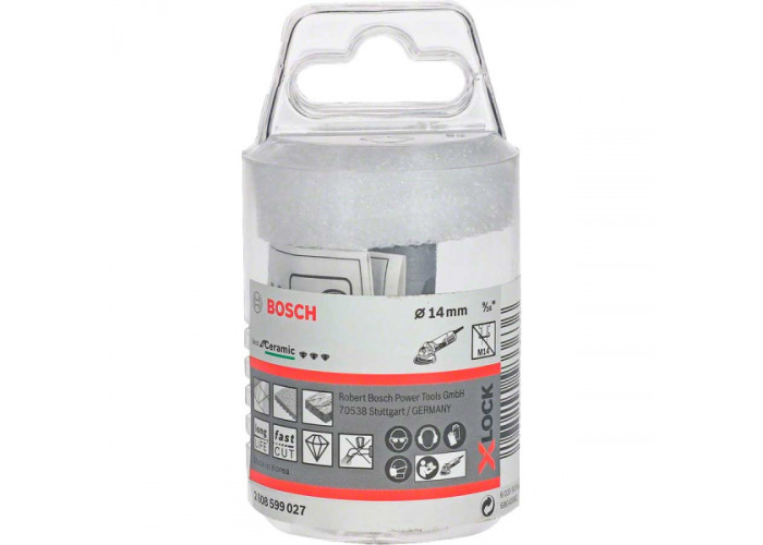 Алмазна коронка Bosch Dry Speed Best for Ceramic діаметром 14 мм (9/16 дюйма), з робочою довжиною 30 мм ідеальна для виготовлення отворів у граніті, мармурі, кераміці, в тому числі підлоговій, настінній плитці. Швидкорізальний алмазний різець з тривалим терміном служби має безключове кріплення X-Lock, і застосовується тільки на болгарках з системою X-Lock.