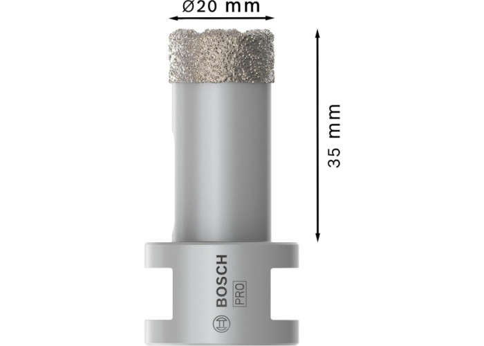 - Алмазне свердло Bosch PRO Ceramic dry — це надійна коронка, розроблена для сухого свердління твердих будівельних матеріалів, включно з цегляною кладкою та керамікою.