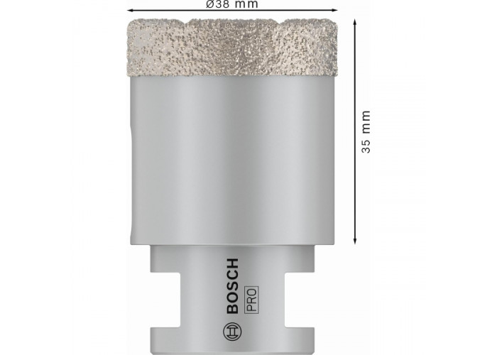 - Алмазне свердло Bosch PRO Ceramic dry — це надійна коронка, розроблена для сухого свердління твердих будівельних матеріалів, включно з цегляною кладкою та керамікою.
