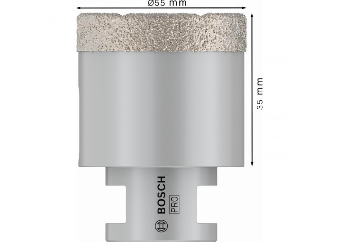 - Алмазне свердло Bosch PRO Ceramic dry — це надійна коронка, розроблена для сухого свердління твердих будівельних матеріалів, включно з цегляною кладкою та керамікою.