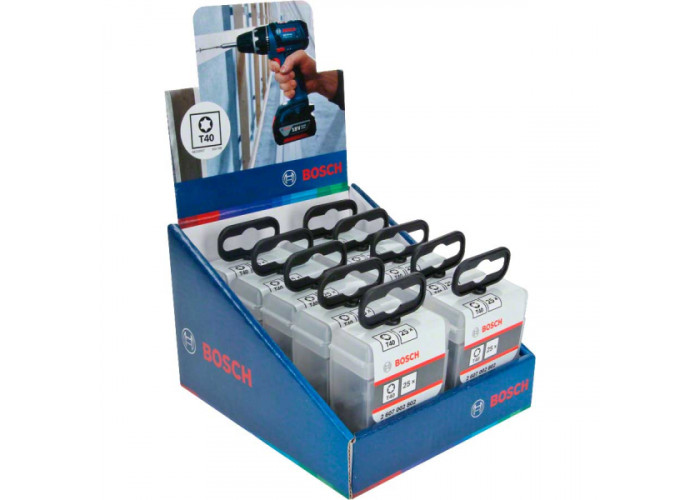 25 насадок для загвинчування Bosch Extra Hard з шліцем T40, довжиною 25 мм. Хвостовик — зовнішній шестигранник ¼ дюйма.