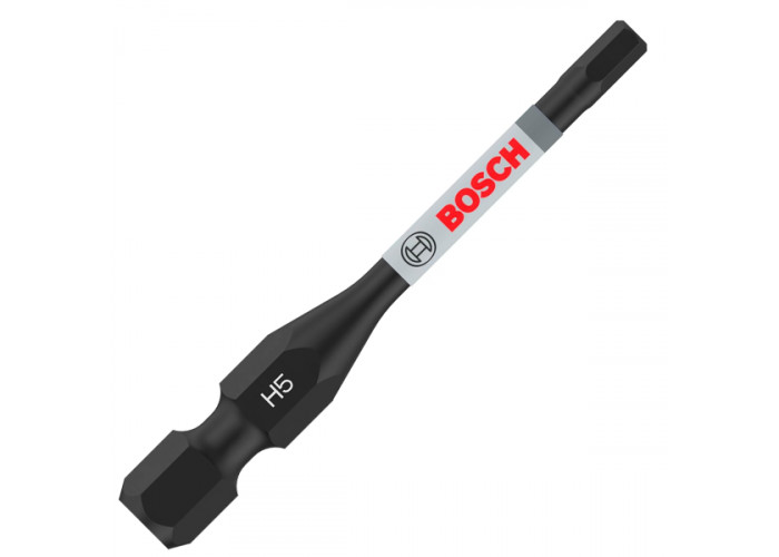 - Біти Bosch Pro HEX Impact H5 довжиною 55 мм — це професійні інструменти, розроблені спеціально для важких монтажних робіт із високим рівнем навантаження. Вони призначені для надійного закручування шурупів із шестигранною головкою HEX у найвимогливіших умовах, включно з використанням з ударними шуруповертами та гайковертами.