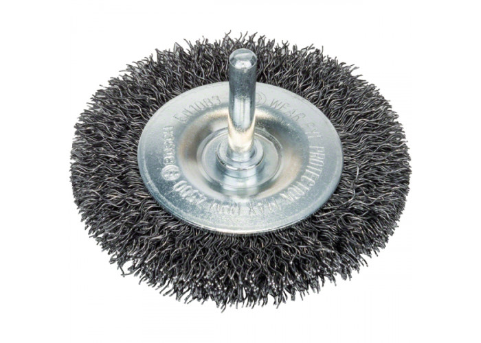 - Дискова щітка Bosch 75 мм, шириною 8 мм виготовлена із сталевого гофрованого дроту 0,3 мм.