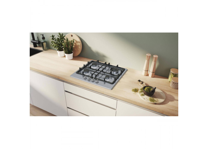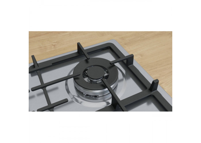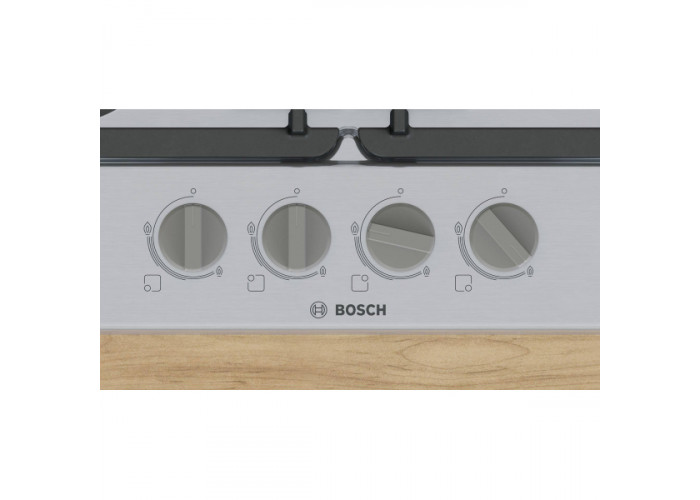 Варильна поверхня Bosch PGH6B5K90R з 4 газовими конфорками різної потужності. Автоматичний електророзпал полум'я. Термоелектричний захист від витоку газу. Мінімальна товщина стільниці становить 20 мм.