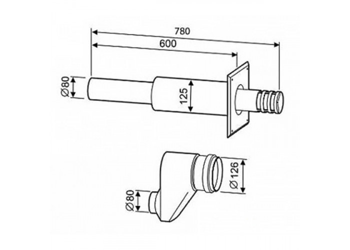 - Горизонтальний двотрубний комплект Bosch AZ 405 діаметром 80-80 мм.