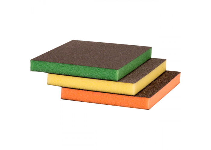 - Щоб зручно було користуватися, кожна губка має свій колір: помаранчевий (Medium), жовтий (Fine), зелений (Superfine).
