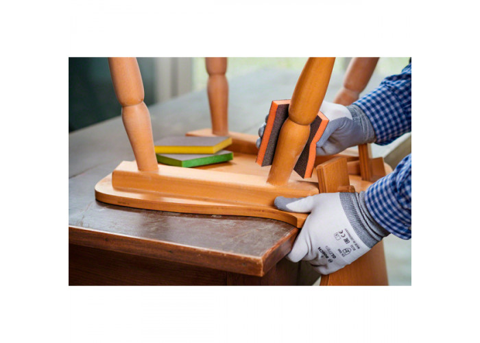 - Губки ефективно зачищають, шліфують і полірують дерев'яні поверхні.