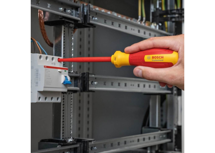 - Ізольована викрутка Bosch Professional VDE PH1x100 — це надійний ручний інструмент, призначений для безпечної роботи з електричними системами до 1000В.