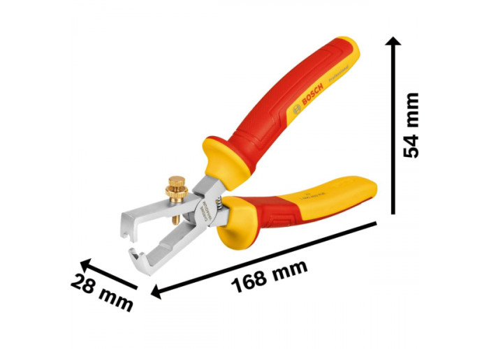 - Інструмент для зачищення проводів Bosch Professional VDE 160 мм — це надійне і безпечне рішення для професійних електромонтажних робіт.