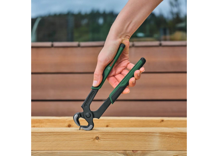 Міцні та довговічні кліщі завдовжки 20 см з відкриттям до 23 мм, виготовлені з високоякісної хромованадієвої сталі із захисним фосфатним покриттям, чудово підходять для теслярських робіт. Загартовані ріжучі кромки твердістю 60 HRC легко справляються з витягуванням і перекушуванням цвяхів. Ергономічні тонкі ручки з м'якими вставками сприяють комфортному захопленню і зручності управління, дозволяючи ефективно передавати зусилля. Плавний хід шарніра забезпечує легкість і точність під час відкриття та закриття інструменту.