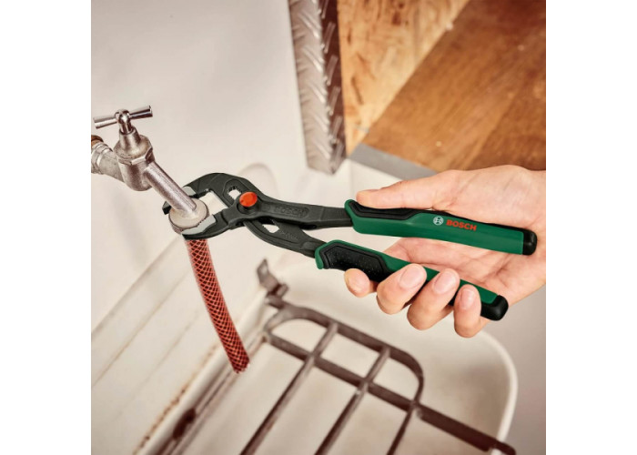 - Переставні багатофункціональні кліщі Bosch довжиною 250 мм — це надійний інструмент для сантехнічних робіт та інших завдань. Підходять для захоплення труб і фітингів різних розмірів, забезпечуючи зручність і точність.