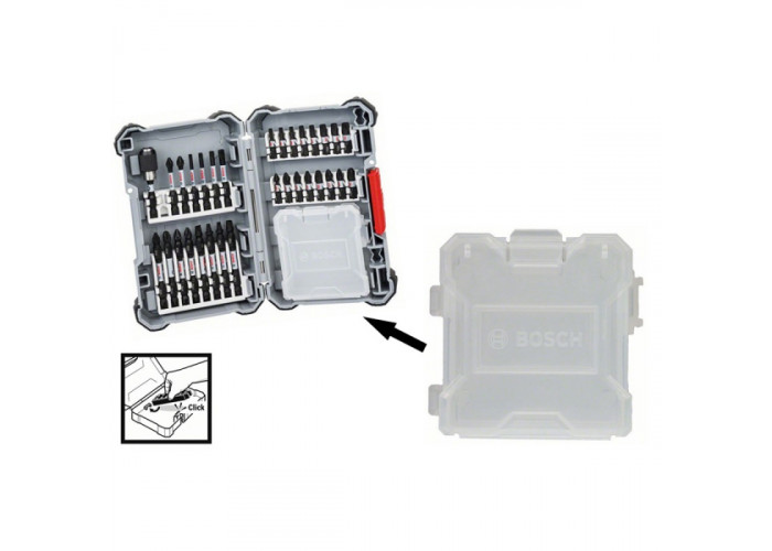 Порожня пластикова коробка для зберігання свердел, біт, дюбелів, гвинтів, цвяхів. Завдяки Click системі легко поміщається в набори з іншим приладдям, де передбачено для неї місце.