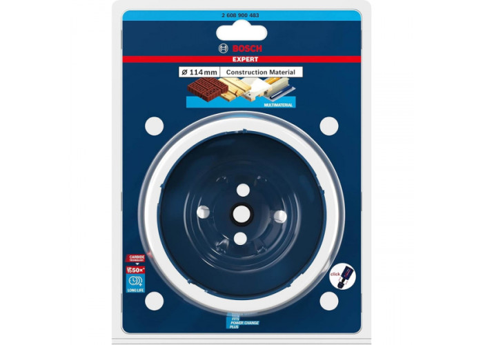 • Bosch Expert Construction Material — це універсальна коронка при будівельних і ремонтних роботах, яка найкраще підійде сантехнікам і електрикам, яким часто потрібно робити отвори в цеглі, деревині, ДСП, м'якій плитці та гіпсокартоні. Вона відрізняється довговічністю, надійністю, міцністю і підходить для виконання безлічі різнопланових завдань.