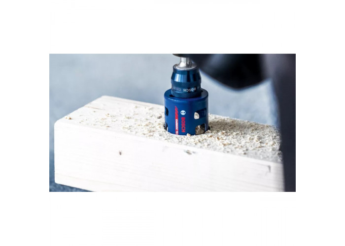 - Технологія Bosch Carbide Technology забезпечує виняткову довговічність оснащення. Зуби посилені твердосплавним матеріалом з використанням високоякісної карбідної крихти, що досягається завдяки передовим методам проєктування і виробництва. Це гарантує максимальну ефективність коронки.