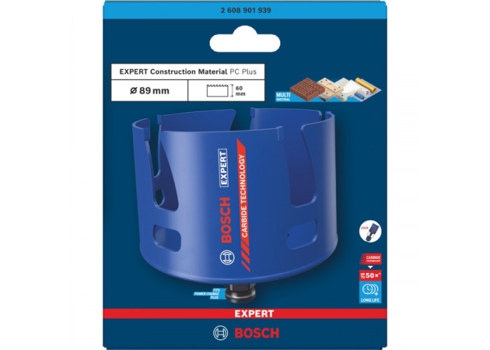- Коронка Bosch Expert Construction Material PC Plus призначена для тривалого та ефективного свердління отворів у будівельних матеріалах, з якими часто стикаються сантехніки, електрики та монтажники під час ремонту та будівництва.