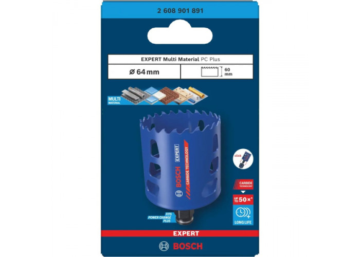 Опис коронки Bosch EXPERT Multi Material Power Change Plus Hole Saw 64х60 мм: