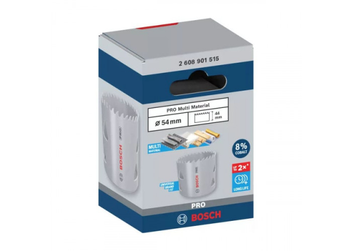 - Коронка Bosch PRO Multi Material діаметром 54 мм, з робочою довжиною 44 мм — надійний і високоефективний інструмент для свердління різних матеріалів, що робить її ідеальною для широкого спектра завдань.