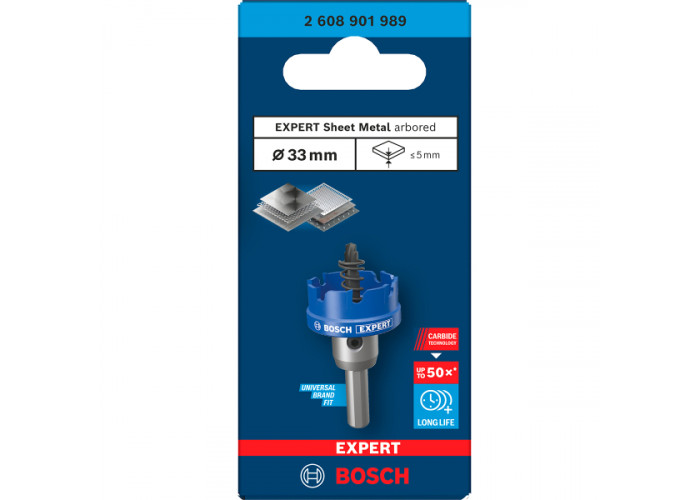 - Коронка Bosch Expert Sheet Metal діаметром 33 мм з робочою довжиною 5 мм і оправкою створена для професіоналів, які цінують швидкість і якість, ця коронка легко справляється з нержавіючою сталлю, листовим металом.