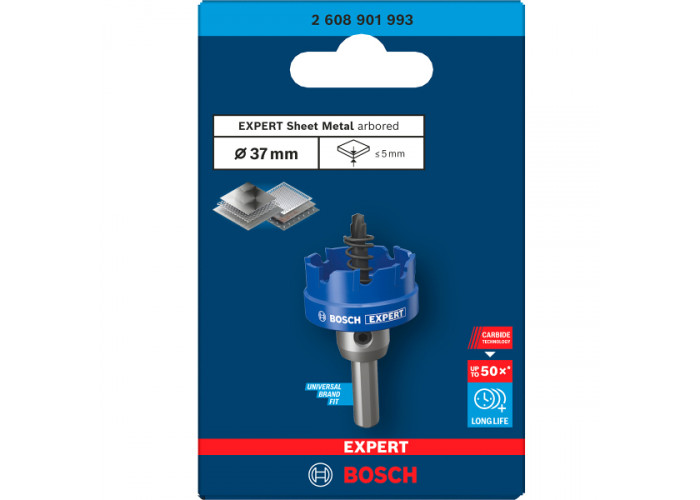 - Коронка Bosch Expert Sheet Metal діаметром 37 мм з робочою довжиною 5 мм і оправкою створена для професіоналів, які цінують швидкість і якість, ця коронка легко справляється з нержавіючою сталлю, листовим металом.