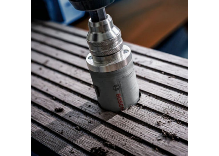 • Коронка Bosch PRO Multi Material - універсальна насадка для висвердлювання отворів у різних матеріалах, зокрема деревині, пластику, гіпсокартоні, металі. Коронка виконана з інструментальної сталі високої міцності, а також має поліпшену форму зубів для ефективного різу.