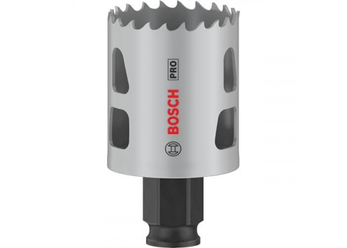 - Bosch PRO Multi Material PC Plus – універсальна насадка для висвердлювання отворів в різних матеріалах, зокрема деревині, пластику, гіпсокартоні, металі. Коронка виконана з інструментальної сталі високої міцності, а також має поліпшену форму зубів для ефективного різу.