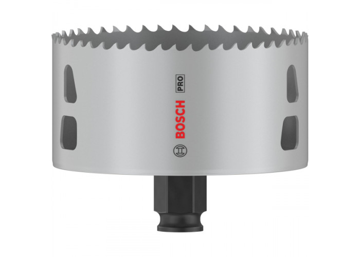 - Bosch PRO Multi Material PC Plus – універсальна насадка для висвердлювання отворів в різних матеріалах, зокрема деревині, пластику, гіпсокартоні, металі. Коронка виконана з інструментальної сталі високої міцності, а також має поліпшену форму зубів для ефективного різу.