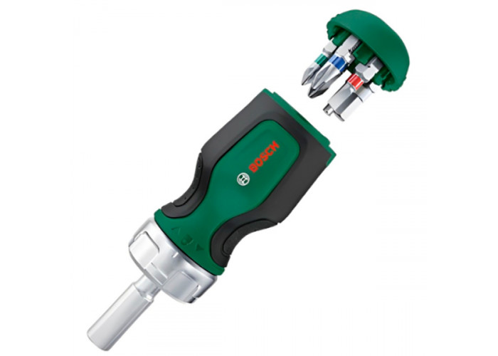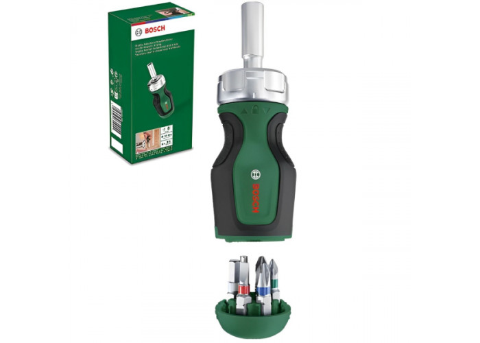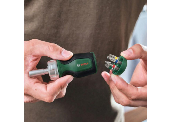 Опис короткої викрутки Bosch з храповиком та 6-ма бітами: