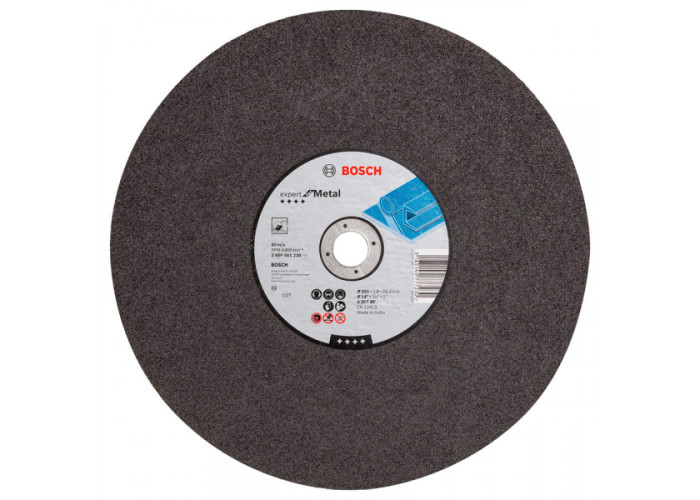 • До вашої уваги високоякісний прямий відрізний круг для різання металу Bosch Expert for Metal A 30 T BF діаметром 355 мм з посадковим отвором 25,4 мм, товщиною 2,8 мм.