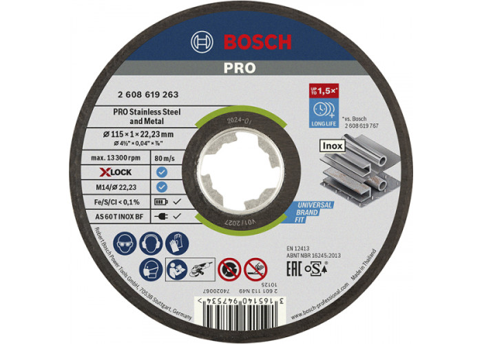 Описание круга отрезного Bosch X-Lock PRO Stainless Steel and Metal 115×1×22.23 мм: