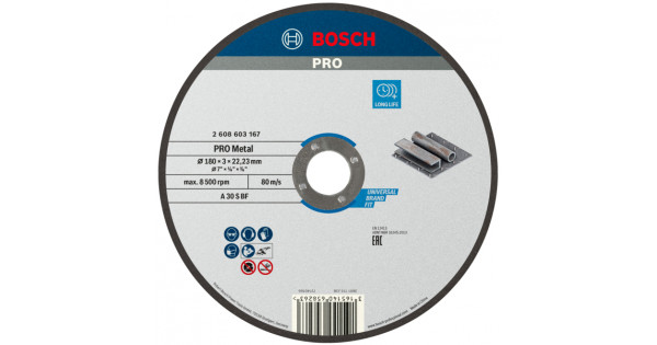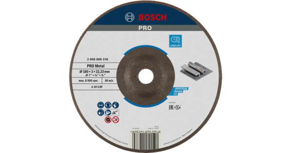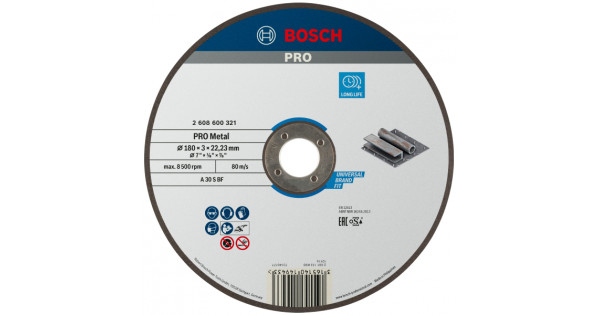 Круг відрізний Bosch PRO Metal 180×3×22.23 мм випуклий