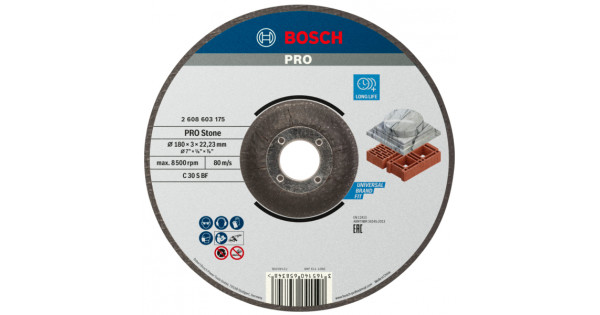 Круг відрізний Bosch PRO Stone 180×3×22.23 мм випуклий