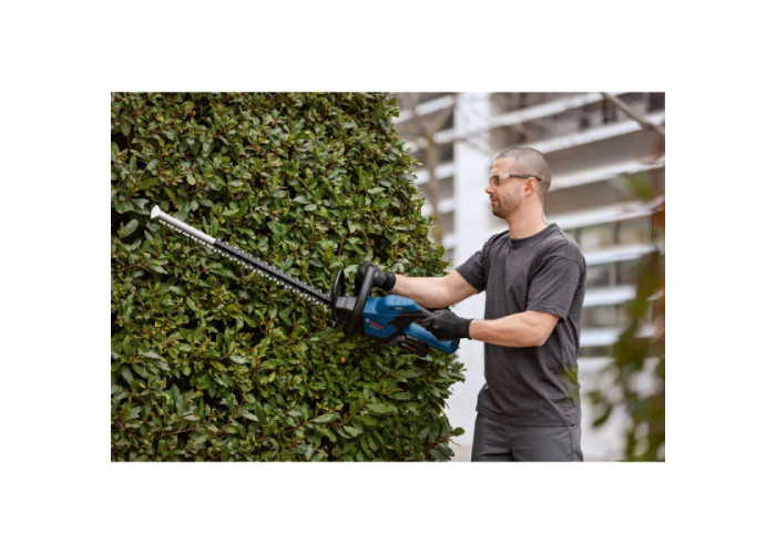 - Bosch GHE 18V-60 используется для эффективной стрижки и обрезки живых изгородей и кустарников средней плотности.