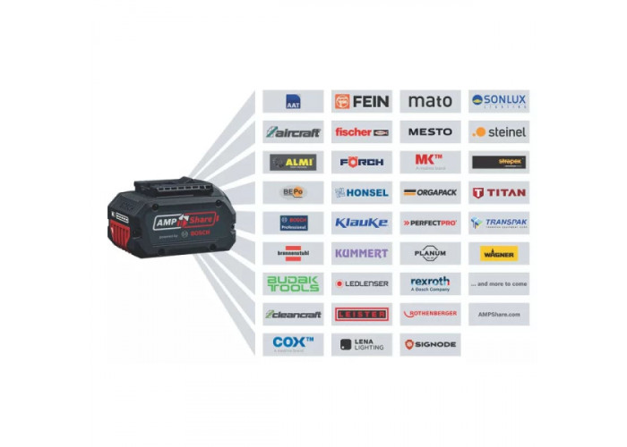 - Bosch GHE 18V-60 оснащений безщітковим електромотором, який сумісний з акумуляторами AMPShare напругою 18 В. У комплект пристрій зарядки та батарея не входять.