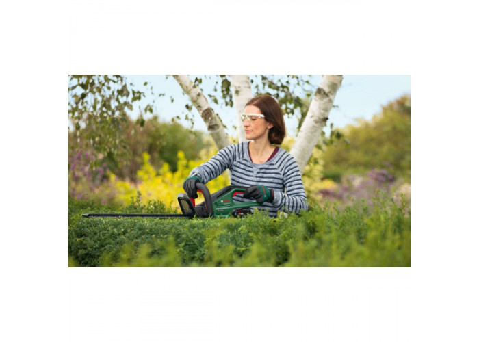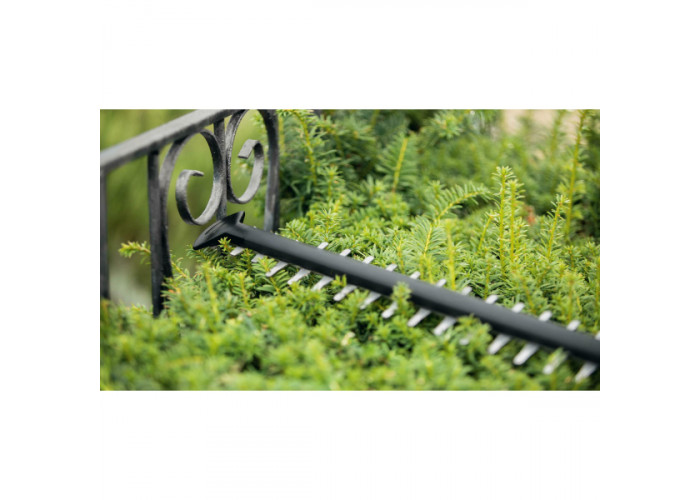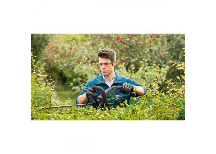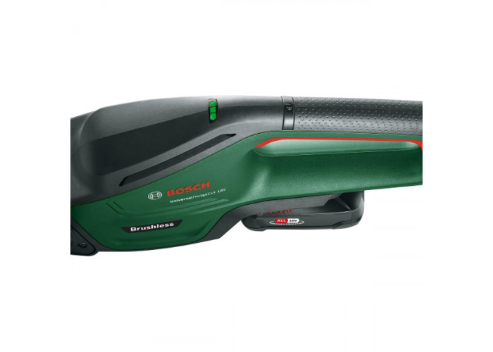 Bosch UniversalHedgecut 18V-50 – побутовий інструмент для догляду за кущами та живоплотом. Живиться від літій-іонного акумулятора 18 В 2.5 Ah. Довжина двостороннього ножа становить 50 см, крок між лезами – 20 мм. Швидкість різу – 2800 хід/хв. Без батареї апарат важить 2,6 кг.