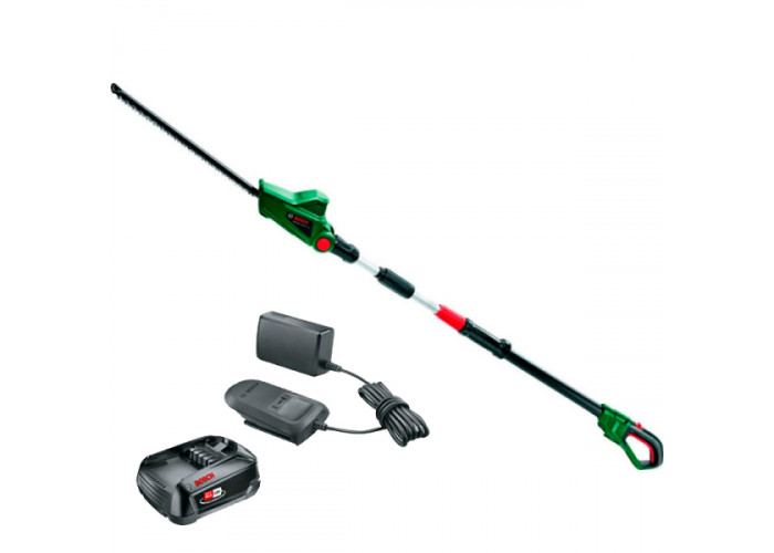 - Bosch UniversalHedgePole 18 запитывается от литий-ионного аккумулятора 18 В.