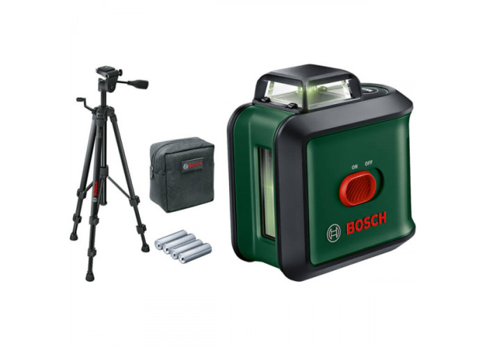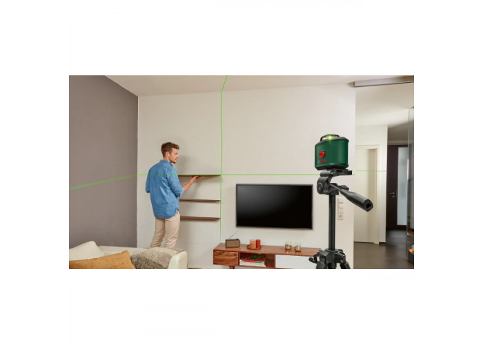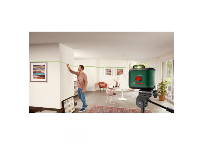 - Высококачественный лазерный нивелир Bosh UniversalLevel 360 Set — гарантия точного определения уровня диаметром до 24 м с двумя зелеными линиями: горизонтальной на 360° и вертикальной 120°. Он идеально подходит как для бытового, так и профессионального использования.