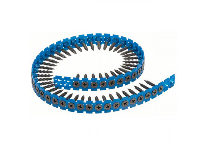 Лента S-G со строительными саморезами длиной по 25 мм, диаметром 3,9 мм, с головкой PH2 подходит к насадке с магазином MA 55. С помощью данных шурупов получится быстро и надежно прикрепить гипсокартон к древесине внутри помещений.
