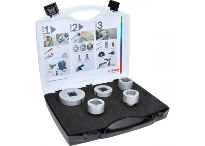 Набір алмазних коронок Bosch Dry Speed Best for Ceramic діаметрами 20, 25, 35, 51 та 68 мм, з робочою довжиною 33 мм ідеальний для виготовлення отворів у граніті, мармурі, кераміці, в тому числі підлоговій, настінній плитці. Швидкорізальні алмазні різці з тривалим терміном служби мають безключове кріплення X-Lock, і застосовуються тільки на болгарках з системою X-Lock.