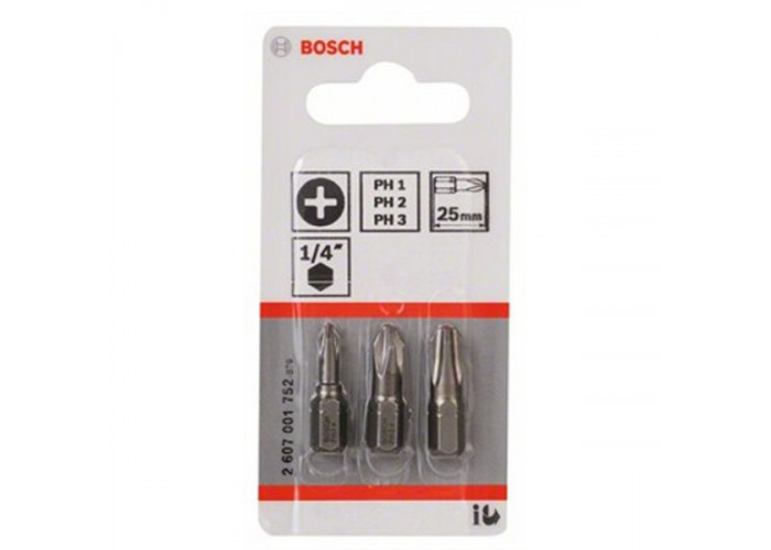 Описание набора бит Bosch Extra Hart PH1, PH2, PH3, 25 мм: