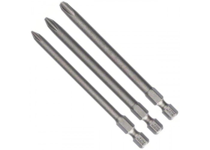 - Набір насадок від Bosch — це три функціональні (хрестоподібні) біти для закручування шурупів за допомогою шуруповерта чи дриля.