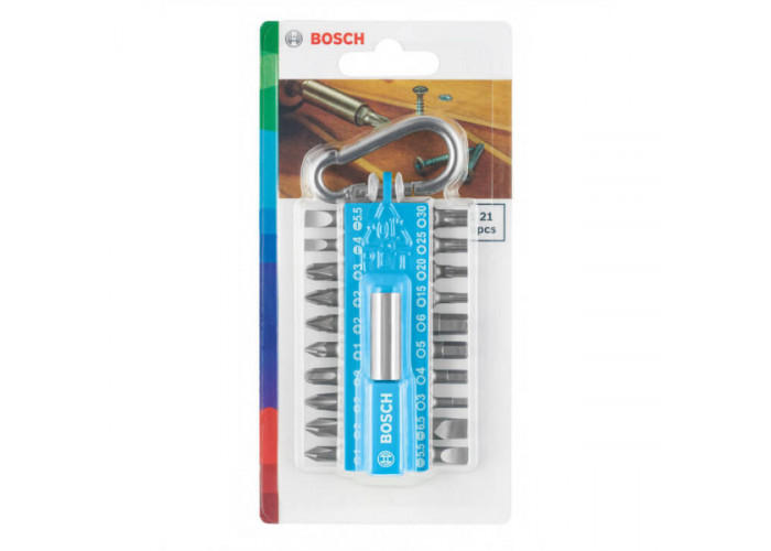 Опис набору біт Bosch із карабіном і бітотримачем, 21 шт: