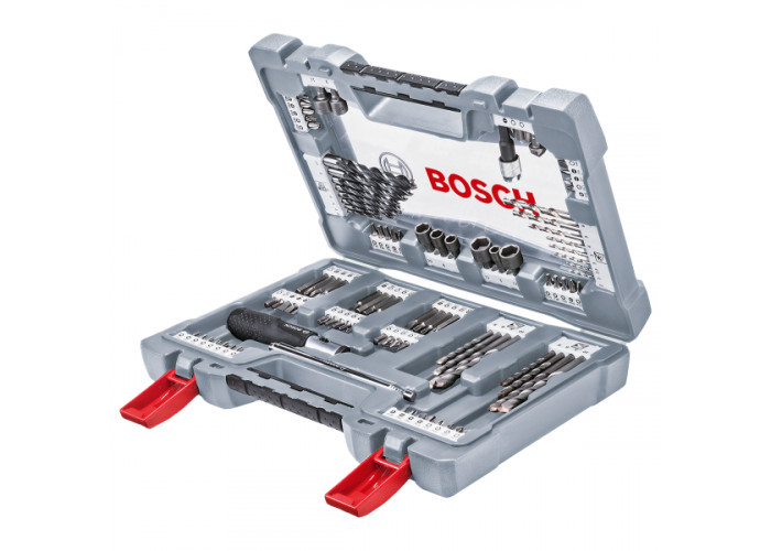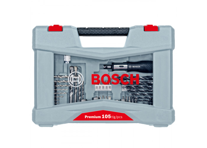Набір Bosch Premium Mixed Set з 91 насадкою і приладдям для загвинчування, свердління в деревині, металі та бетоні. У комплект увійшли 8 свердел по бетону діаметром 5/5/6/6/8/8/10/10 мм, 8 свердел по металу 2/2/2,5/3/3/4/5/6 мм, 8 свердел по дереву 3/4/5/6/6/7/8/10 мм. 59 насадок-біт довжиною по 25 мм — H 4/5/5/6/6, PH 0/0/1/1/1/2/2/2/2/2/2/3/3/3, PZ 0/0/1/1/1/2/2/2/2/2/3/3/3, S 4/5/5/6, T 10/10/10/10/10/15/15 / 15/15/20/20/20/20/20/20/25/25/25/25/25/30/40. 10 біт довжиною по 50 мм — H 3/5, PH 2, PZ 2, S 3/5/6/7, T 20/25. Торцеві головки 6/7/8/9/10/11/12/13 мм. Універсальний магнітний утримувач, конічний зенкер, магнітний стрижень, храпова викрутка.