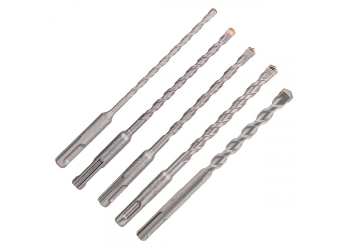 Набор из пяти ударных сверл SDS-Plus-1 размерами 5х100х160 мм, 6х100х160 мм, 7х100х160 мм, 8х100х160 мм, 10х100х160 мм. Для эффективного прохождения бетона, кирпича.